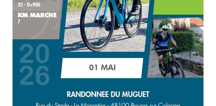 Nous vous donnons rendez-vous le mercredi 1er Mai 2025 pour la deuxième randonnée du muguet au stade de foot du Monastier (48100 Bourg-sur-colagne). Routes...