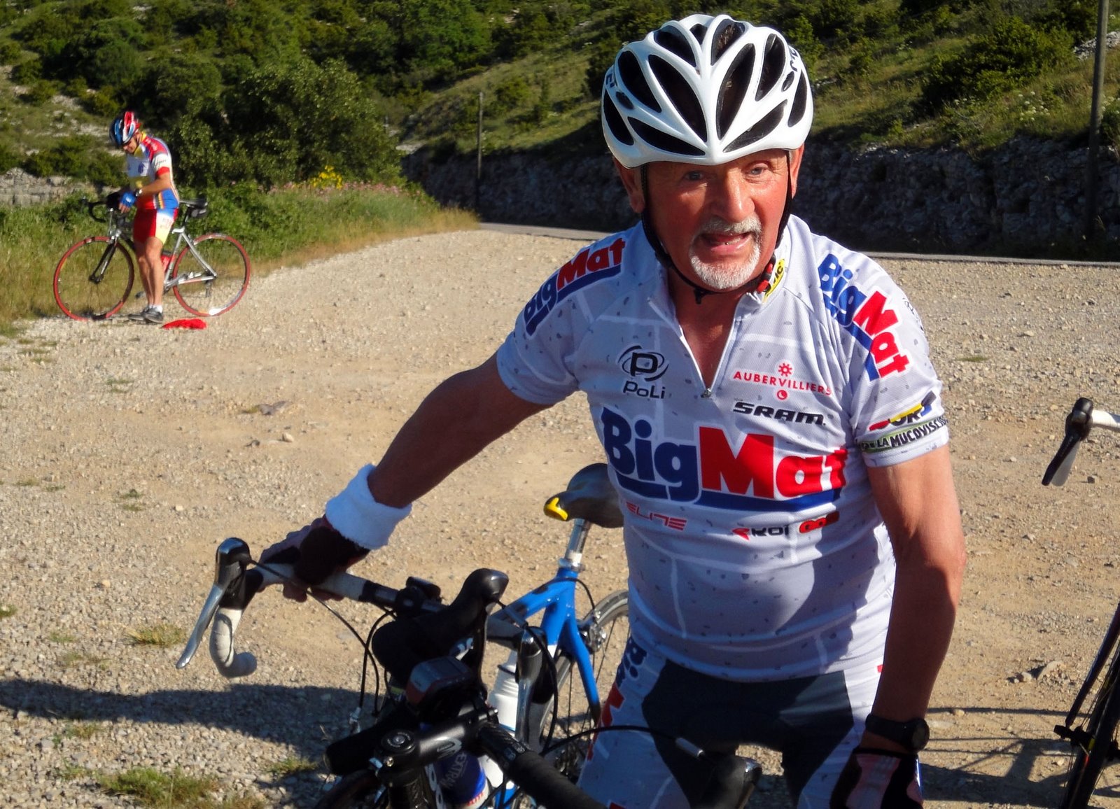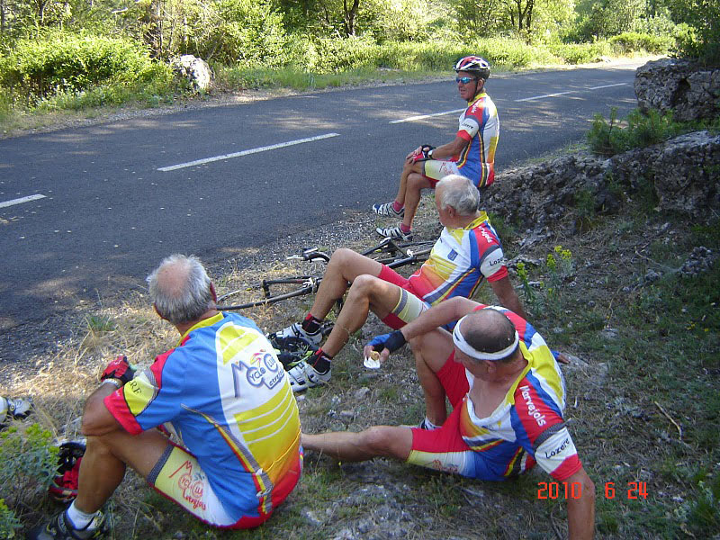 Assistance fort appréciée et utile, en premier lieu pour rapatrier notre ami Jeannot qui fît une mauvaise chute en cours de parcours suite à l’imprudence d’un jeune motocycliste qui nous a coupé la route..De mauvaises égratignures mais surtout les dégâts occasionnés à son vélo l’ont empêché de poursuivre.
