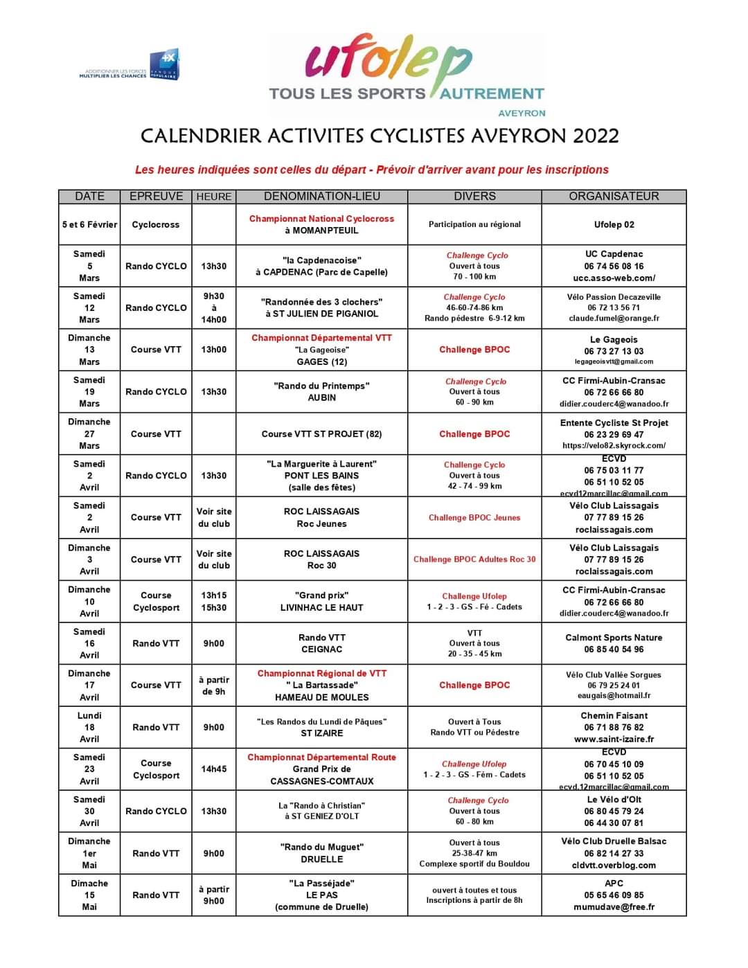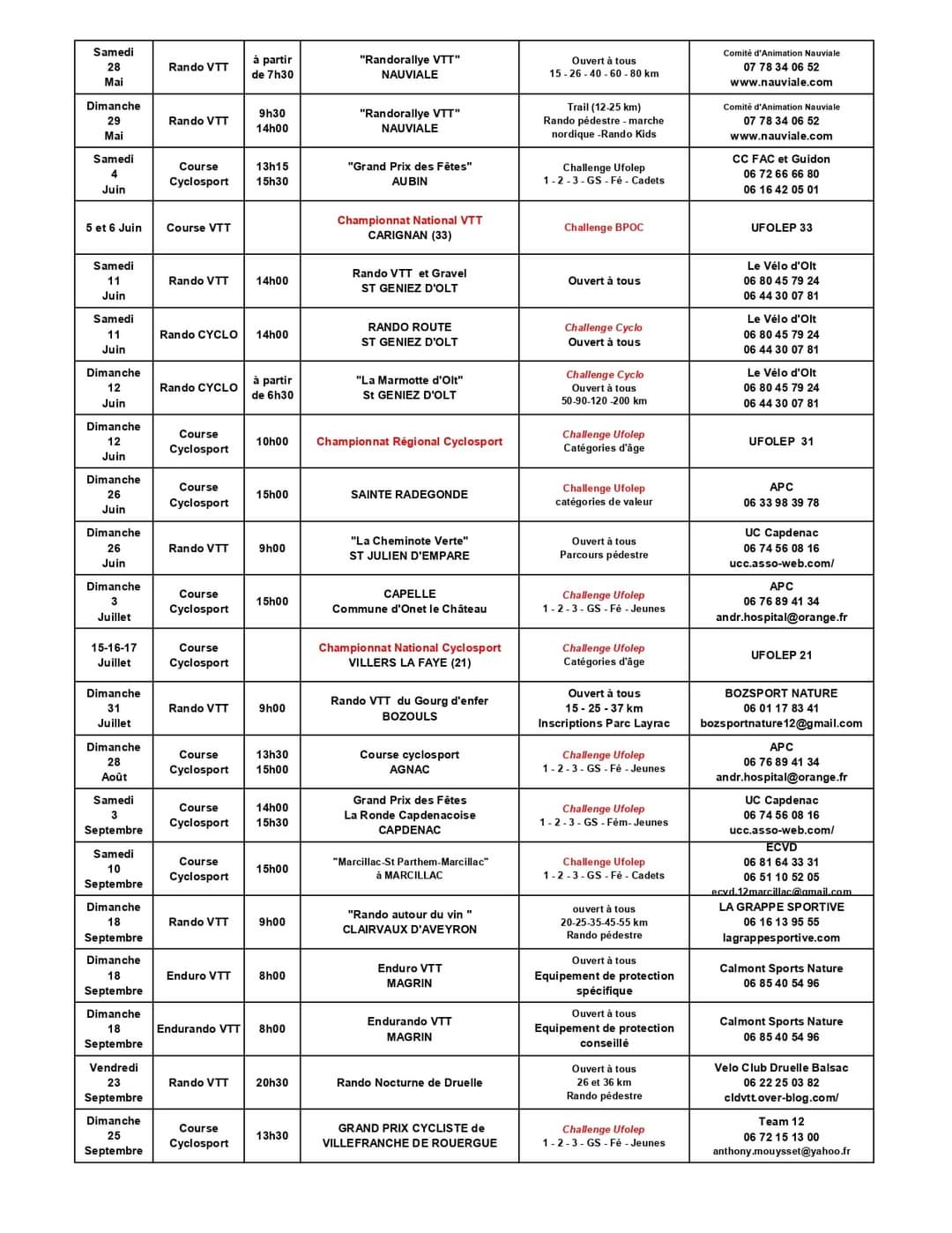 - Calendrier Ufolep Aveyron
