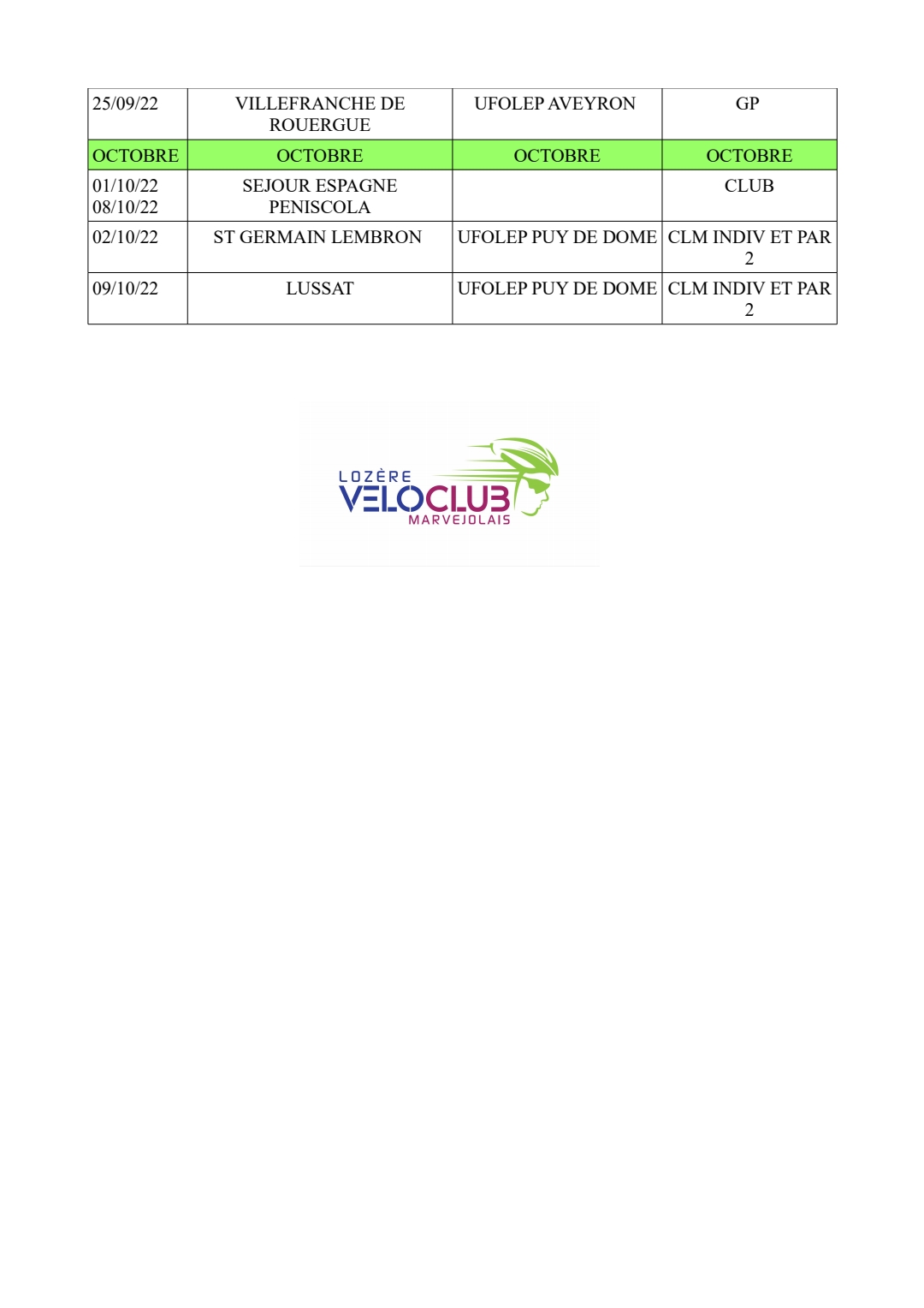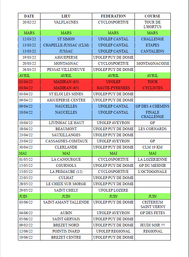 Voici un calendrier récapitulatif de la section Ufolep ainsi que les calendriers officiels des autres départements voisins.